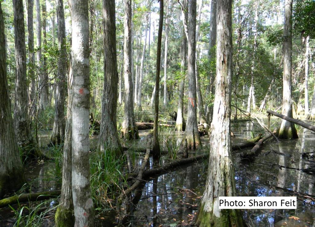 We presented our latest wetlands research at the annual meeting of the South Atlantic Chapter of the Society of Wetlands Scientists. Wetlands provide many services, including groundwater recharge and flood mitigation, habitat forcypressdome_inside_flooded species adapted to life in seasonally wet environments, and recreational and even spiritual opportunities. Two biogeochemical services that wetlands provide are carbon and nitrogen storage, which mitigate greenhouse gas loading to the atmosphere and protect downstream water quality.