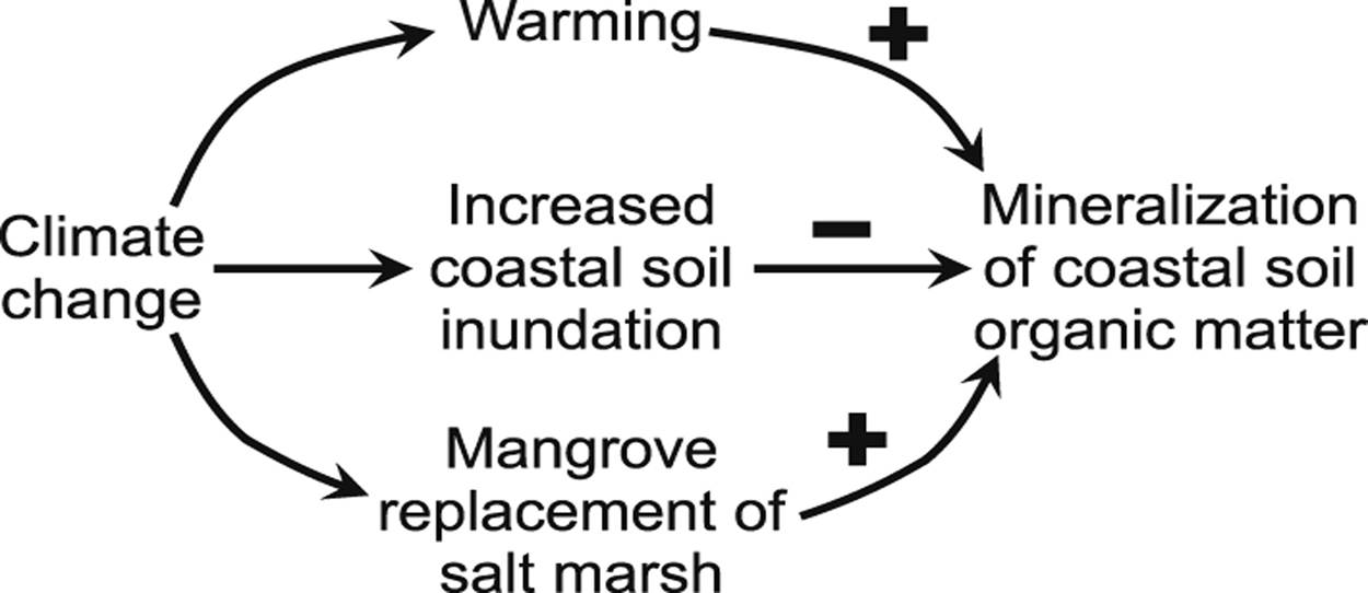 Graphical abstractCheck out our latest paper on the mineralization of soil organic matter in coastal wetlands. Coastal wetlands are mangrove forests and salt marshes at the interface where land meets the sea. Mangrove forests are located in the tropics, salt marshes with primarily herbaceous vegetation are found at cooler latitudes, and the two habitat types intergrade in the subtropics. These ecosystems store massive amounts of soil organic matter, the decaying remains of once-living material. The mineralization (i.e., complete decomposition) of this organic matter results in the loss of soil mass and a decline in soil elevation, rendering these ecosystems more vulnerable to sea level rise; releases carbon- and nitrogen-based greenhouse gases and pollutants to air and seawater; and yet supplies nutrients to coastal wetland vegetation.